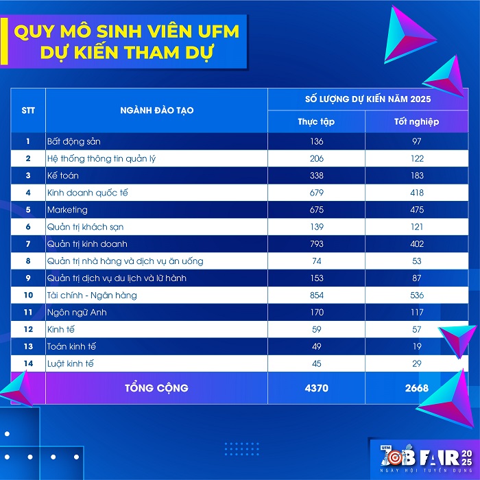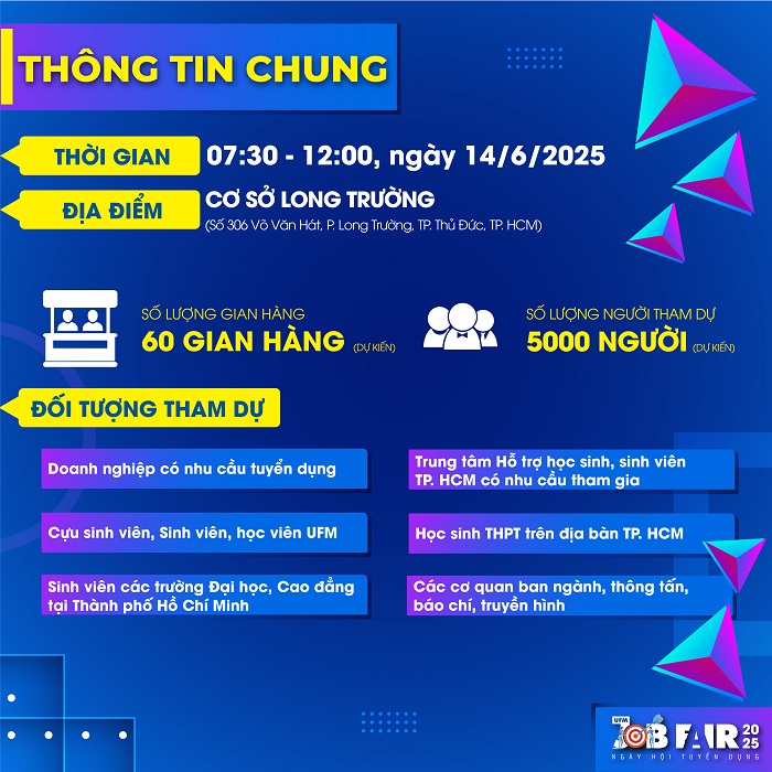 Trước thực tế thị trường lao động ngày càng cạnh tranh khốc liệt, Ngày hội tuyển dụng tích hợp – JOB FAIR UFM 2025 được tổ chức bởi Trường Đại học Tài chính – Marketing (UFM) hứa hẹn sẽ là cầu nối hiệu quả giữa sinh viên và doanh nghiệp, mang đến hàng loạt cơ hội việc làm hấp dẫn và thiết thực.