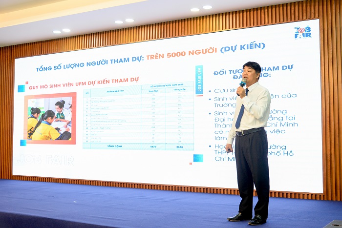 Phát biểu tại họp báo, Tiến sĩ Lê Trung Đạo, Phó Hiệu trưởng Trường Đại học Tài chính – Marketing, Trưởng Ban Tổ chức JOB FAIR UFM 2025 – nhấn mạnh rằng ngày hội tuyển dụng là minh chứng cho cam kết mạnh mẽ của nhà trường trong việc gắn kết đào tạo với nhu cầu thực tiễn của doanh nghiệp. Ông khẳng định sự đồng hành của hơn 50 doanh nghiệp cùng hàng nghìn cơ hội việc làm không chỉ thể hiện sức hút của sự kiện, mà còn khẳng định uy tín ngày càng tăng của UFM trong cộng đồng tuyển dụng.