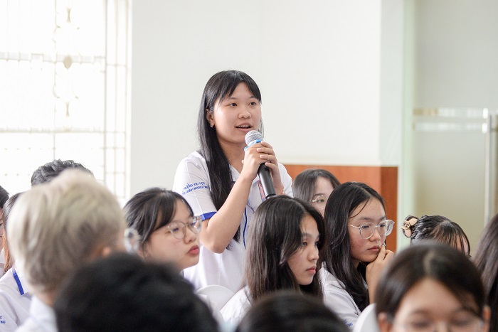 Các bạn sinh viên phát biểu tại buổi họp báo